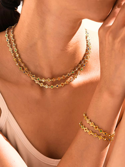 Floral Essence Multicolor Single Layer Choker & Bracelet Set