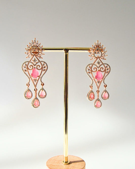 Celeste Zirconia Chandelier Earrings Pink