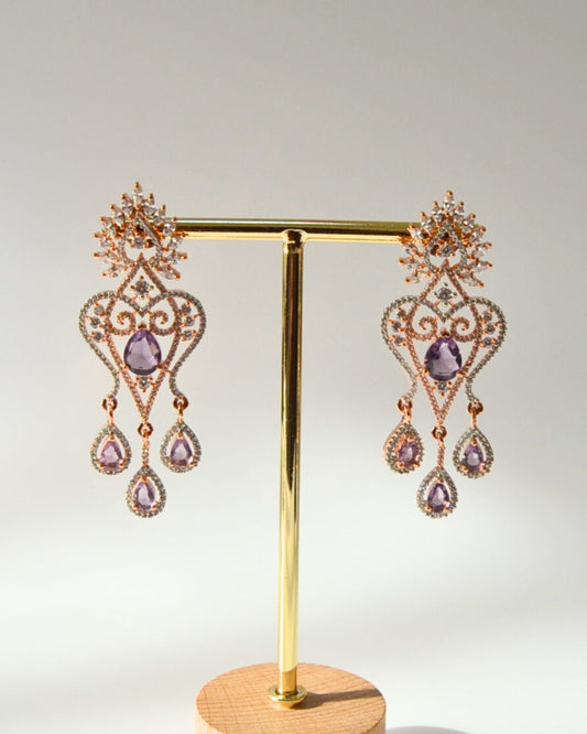 Celeste Zirconia Chandelier Earrings Purple