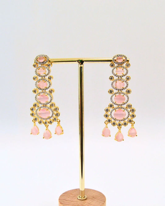 Zaria Zirconia Chandelier Earrings Pink