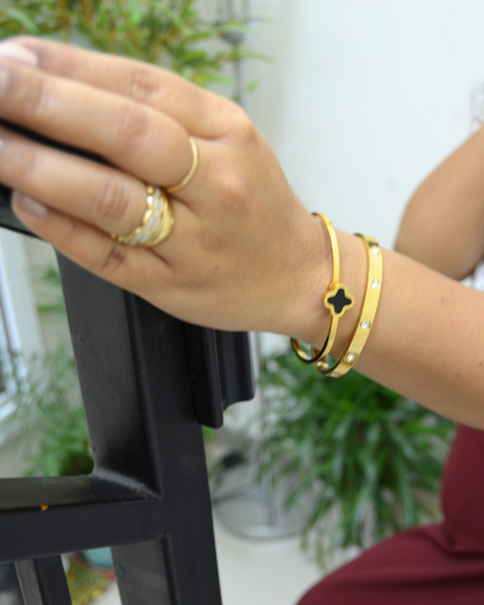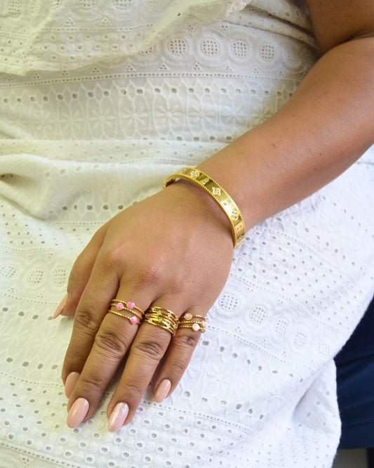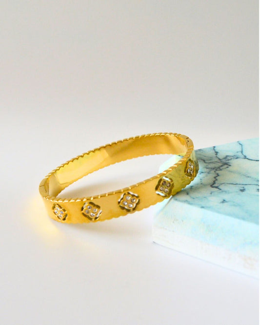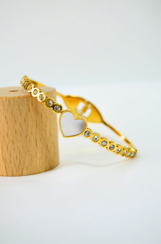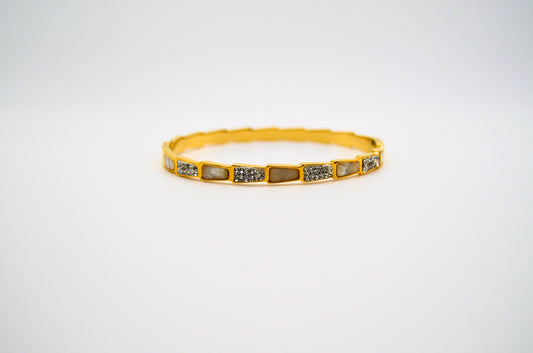 Elegance Gold, Cubic Zirconia & Shell insert Bangle