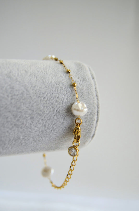 Forever Yours Gold Plated Pearl Charms Bracelet