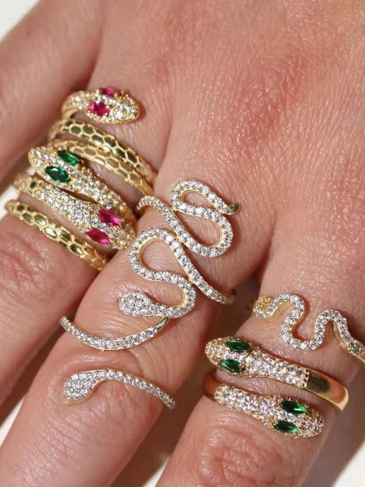 Zyra Green Stone Snake Ring.(adjustable)