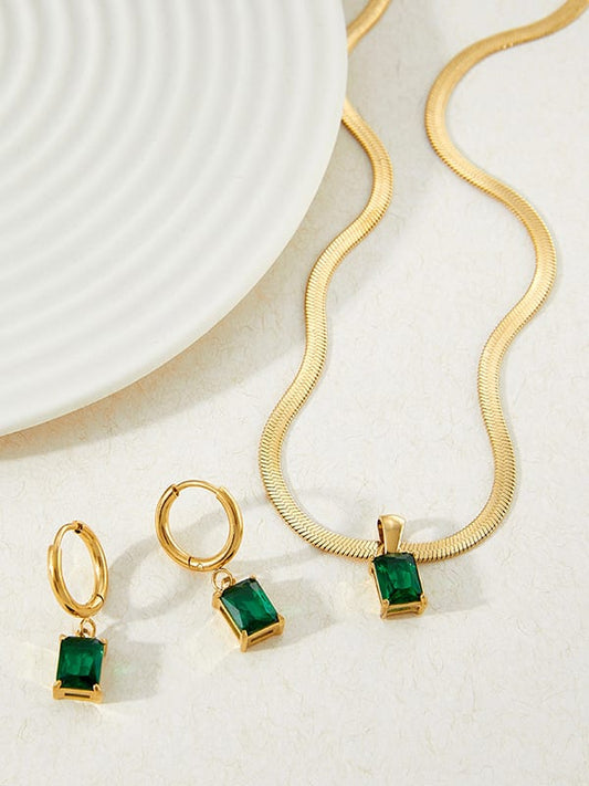 Forever Yours Gold Plated Layered Necklace with Green Heart Pendant