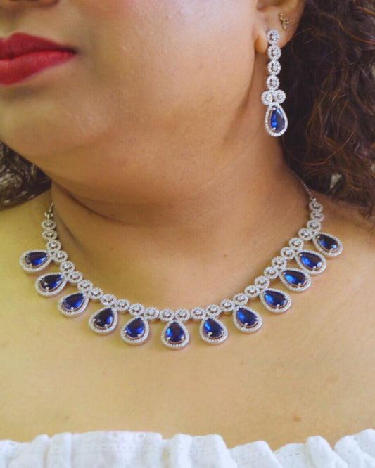 Camelia Zirconia Necklace set Blue
