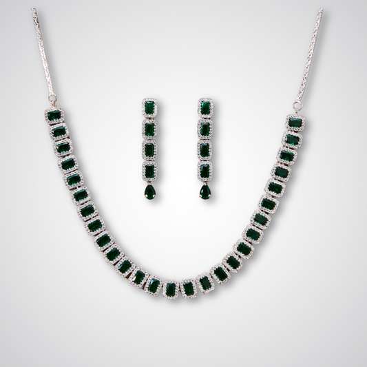 Camelia Zirconia Necklace set Green
