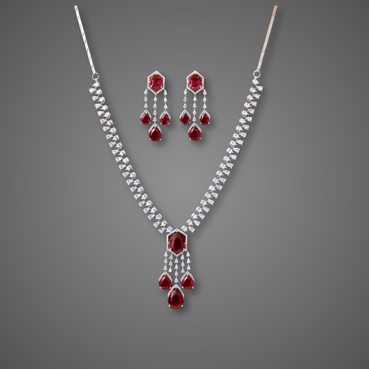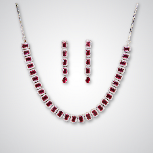 Amaira Zirconia Necklace Set Magenta