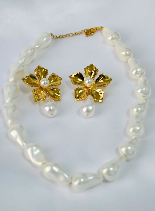 Floral Essence Freshwater Pearls Necklace & Earrings Set