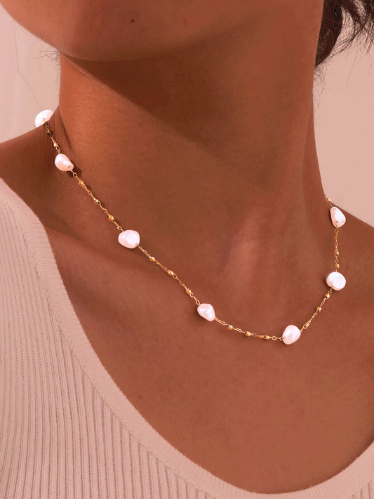 Forever Yours Pearl Heart String Necklace & Bracelet Set
