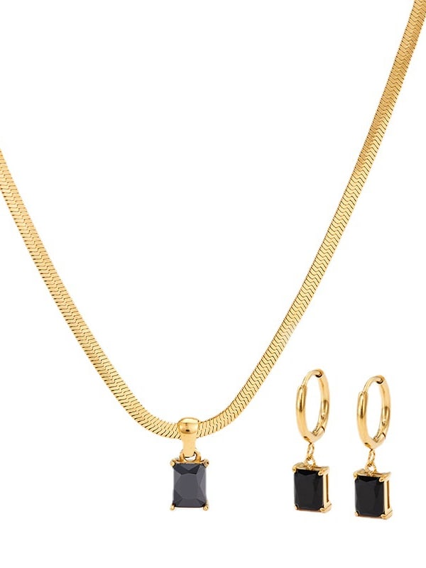 A delicate gold chain with a stunning pendant, and matching drop earrings. The Elegance Long Chain Pendant Necklace exudes timeless elegance. Perfect for any occasion, this necklace set adds a touch of sophistication and style to any outfit. Elevate your look with this must-have accessory or gift it to a dear one.