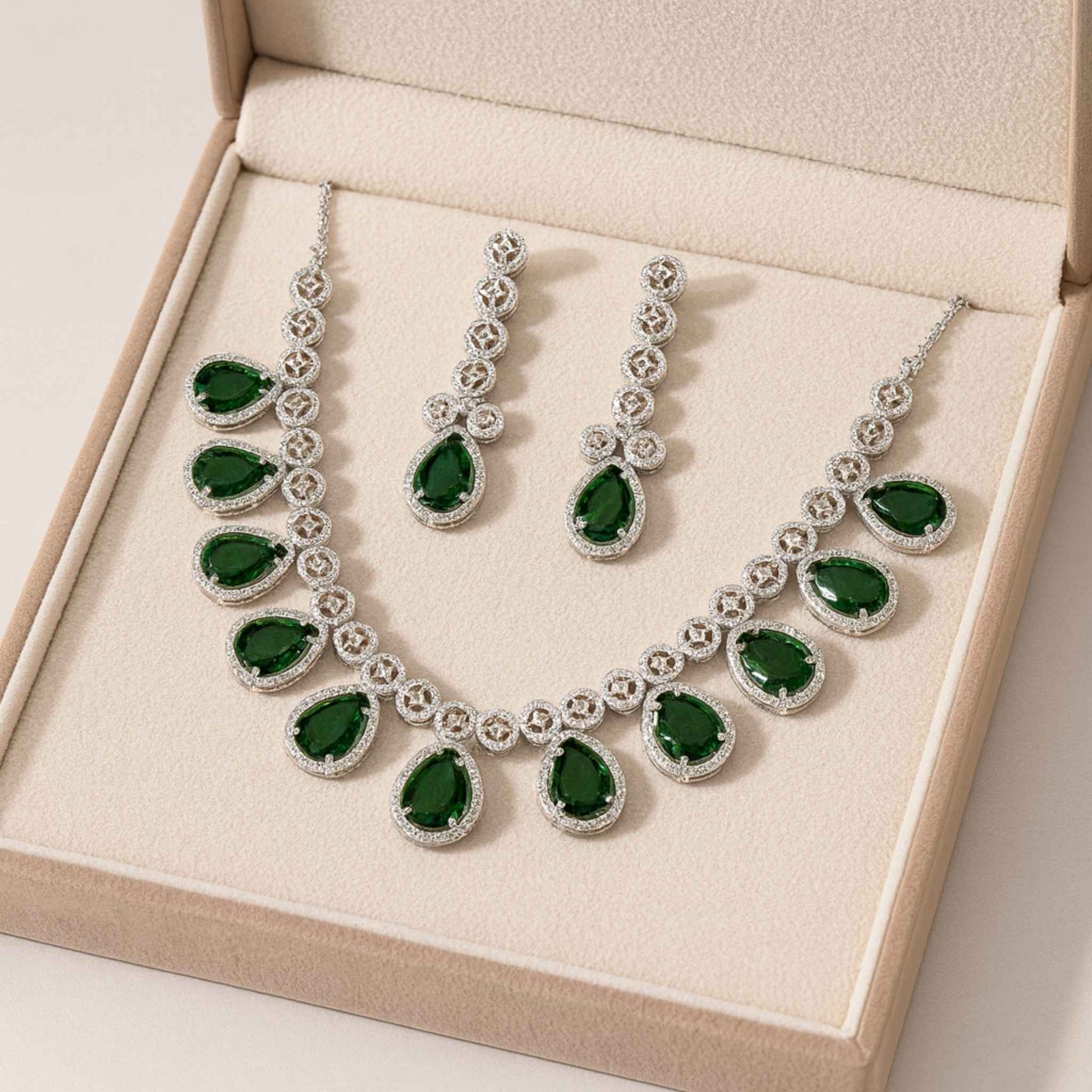 This necklace set is the perfect addition to any outfit, providing a touch of elegance and sophistication. The colored Zirconia stones are carefully selected for their brilliance and fire, creating a stunning and eye-catching effect. With this set, you'll look and feel confident at any event or party. Plus, the high-quality materials ensure long-lasting durability, so you can enjoy this beautiful set for years to come.